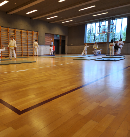 Šioje salėje yra ugdomi ir lavinami vaikai ir paaugliai. Turime didžiulę erdvę, kur galime be apribojimų lavinti visas žmogaus fizines ypatybes ir Aikido technikos elementus.